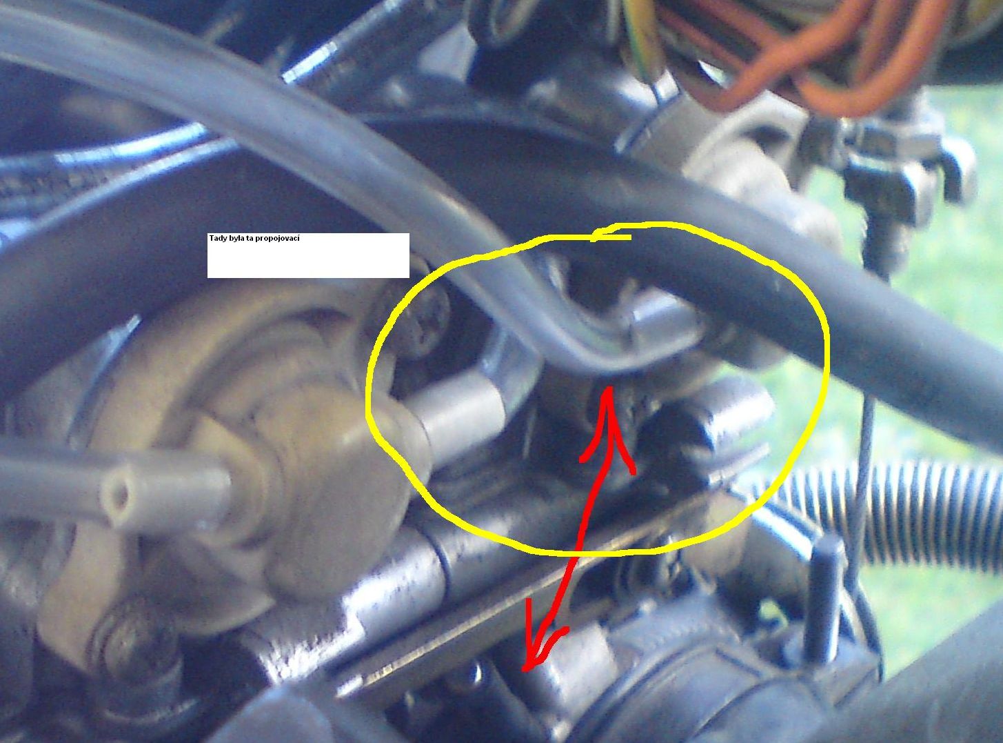 Při prvním zrušení hadiček sem zapoměl na tu propojovací mezi karburátorama nad membránama.Bylo to jako kdybys ji přiškrtil.