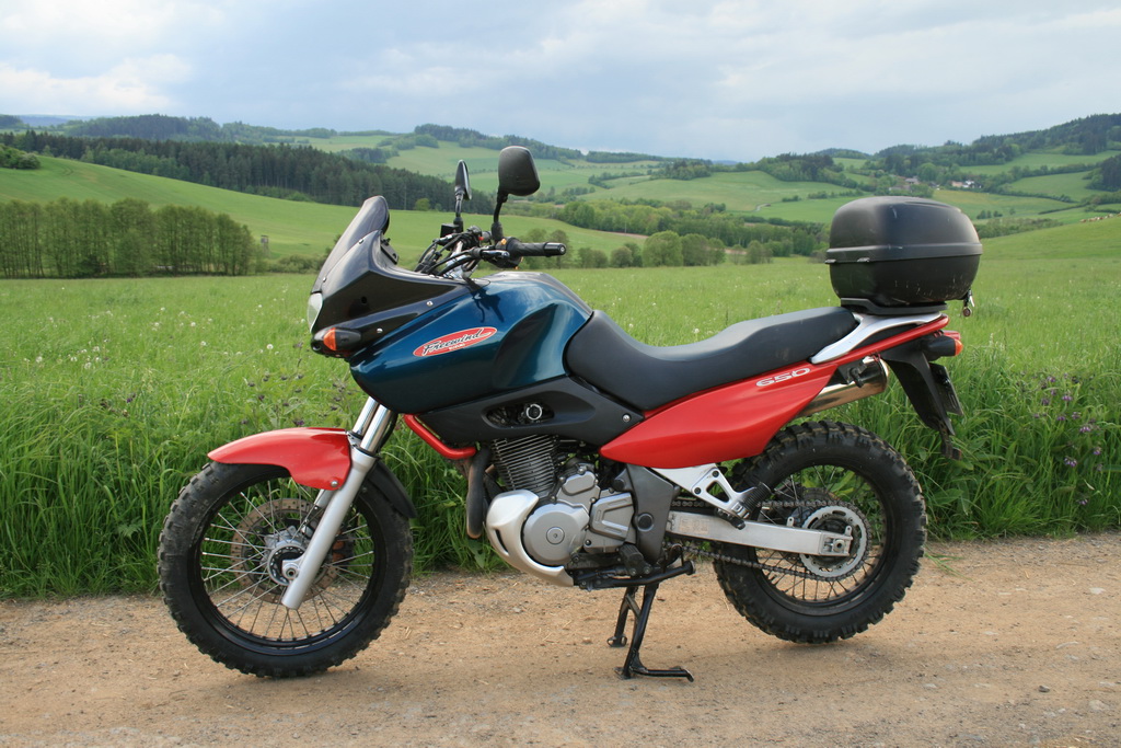 Tak konecne snad chvile casu na pridani se do galerie. Po cca 7lete pauze (1.moto Yamaha FZR600R 96) konecne zase moto a zmena "druhu" Rok 97, koupeno letos v dubnu, tachometrove 17tis km a zda se ze by to i mohlo odpovidat podle stavu. Zatim nove pneu (Mitas E09). Najeto cca 600km, ranni cesty do prace 10km a zpet kdyz se chce tak skrz les, louku, pole myslim ze ideal