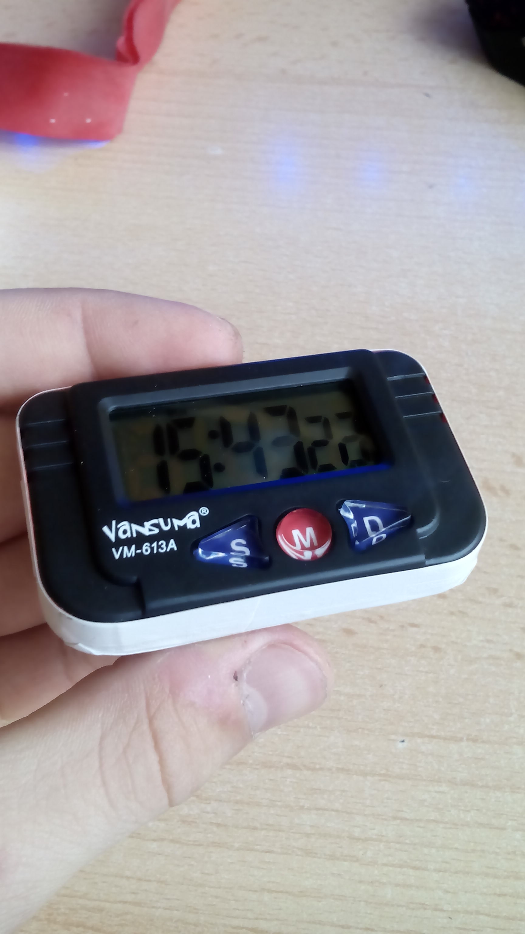 Na tržnici se mi podařilo pořídit hodiny do auta za 20 Kč i s držákem. Vypadají takto: