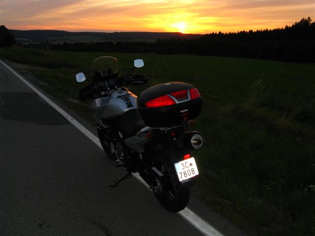 když stromek , tak v lese -a nejkrásnější je to na jižní hranici při rakousích- u jezer, v okolí Suchdolu n/L a Halámek a tohle je foceno u jezera Lassesbergeru-0,5-1km od jižní čáry....a večer....teda pánové a dámy-výlet na tu stranu nemá chybu-krásná autostráda, málo aut a krásná příroda třeboňské pánve a předhůří Novohradských hor, teď na podzim, kdyby mi to nebylo blbý tak jí tam peru 150-160-nádherná stráda, ale ono je škoda nekoukat okolo sebe a neužívat si to....na příští rok plánuji při projížďkách permanentní výlety do Austrie-ať to vemu kamkoliv, mám to 20-40-60 km na 3 přechody, tak jen pohlídat normy ( koukám po laďáku, takže pouze s vyjímatelnou homologovanou vložkou, ať už to bude Leo Vince, Akrapovič nebo cokoli jiného)....a tradáááá