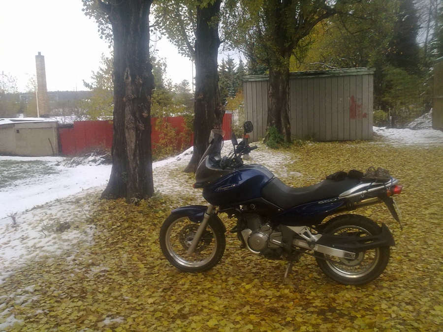 Maxton zdraví ze zimní jízdy... včera jsem byl u přítelkyně a trošku napadl sníh, tak jsem jel svojí historicky první jízdu za padajícího sněhu.... :lol: