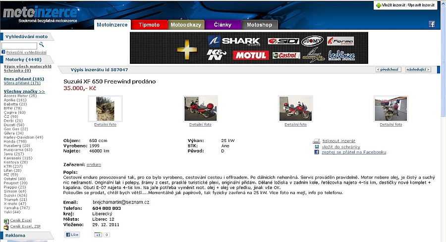 martinbrejcha píše:nebudu dělat nikomu prostředníka, oslovil jsem Lucku, že by byl o Freewa zájem. Pokud mi dá souhlas, pošlu jen zájemcům o motorku :!: :!: :!: SZ s tel. číslem, domluvte se s ní..........