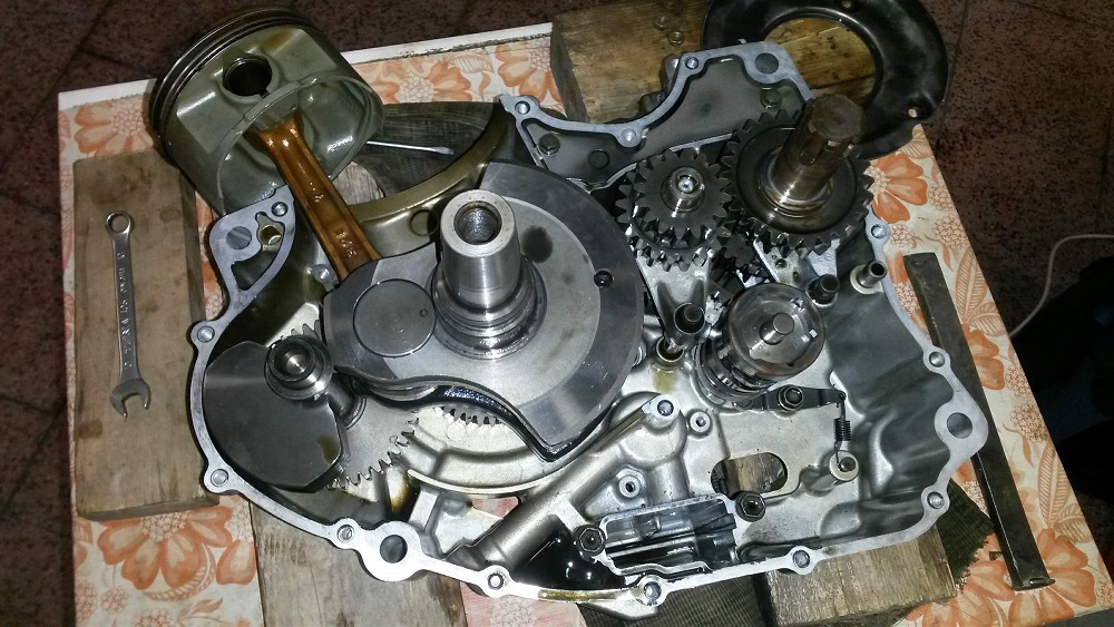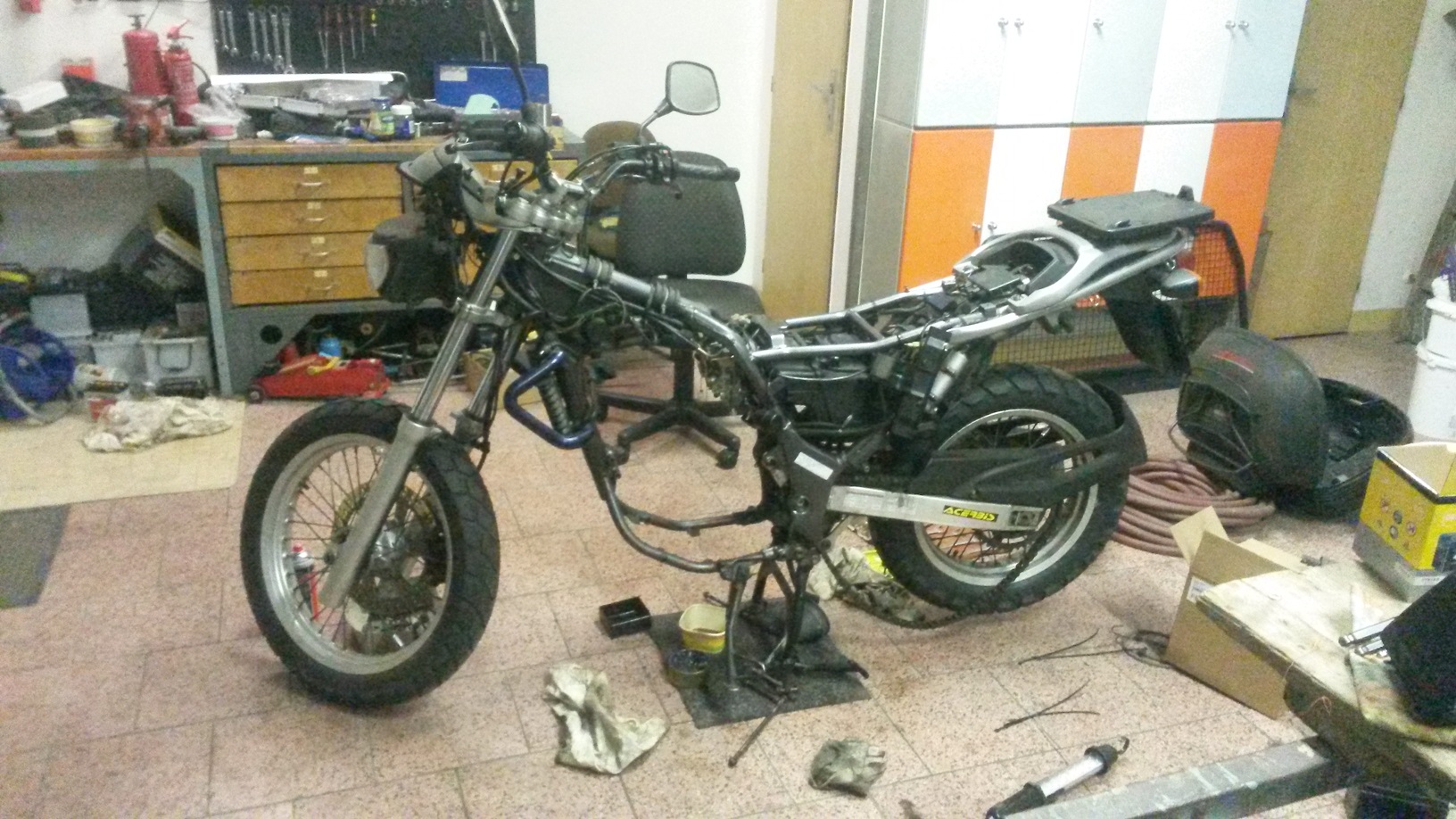 . V září jsem pořídil nové gumy Metzeler tourance, nechal jsem si gumy přezout v servisu. Pláště bych si bez problémů přehodil sám, ale vyvážení to ani v práci neudělám pouze kola na auta a dodávky. Takže jsem zavezl motorku do servisu za hodinku byla hotová tak jsem si pro ni jel, přijel jsem domů oblíknul si hadry na motorku a s přítelkyní jsme se vydali na vyjížďku. Ujeli jsme cca 5 km od baráku a v cca 100km/h se zastavil motor. Tak jsem to odstavil na kraji a už nenatočil ... už na parkovišti jsem měl podezření na zadřený motor. Když jsem doma sundal hlavu tušení se mi potvrdilo. Takže jsem sundal hlavu, spolu s vačkou a vahadlama jsem ji zavezl frajerovi co se tímto živí (se divím že neumře hlady). Mezitím co jsem čekal na hlavu jsem udělal komplet GO převodovky (všechny ložiska, gufera, kontrola všech kvaltů). Po dlouhých 8 měsících hlavu konečně opravil. Byl jsem uplně happy že už bude koněčně motorka v pořádku. Zrovna začínalo jaro tak jsem to během týdne složil motor a namontoval ho do motorky. Prvni start v pohodě tak vše vypadalo že se povedlo. Když už jsem měl motorku poskládanou, tak že bych ji mohl projet jsem zjistil, že mi neřadí převodovka. Moje chyba, že jsem si to nevyzkoušel hned po poskládání motoru. Následovalo opětovné vytažení motoru na stůl. Znovu jsem ho začal půlit, po sundání hlavy jsem zjistil opětovně přidřenou vačku a vahadla. Myslel jsem že mě z toho jebne, měl jsem hodně co dělat abych nesedl do auta a nezajel rozbit hubu frajerovi co to opravoval. Takže po víkendu jsem mu hlavu odvezl znovu. Rozpůlil jsem zas převodovku dumal jsem nad ní cca 4 hodiy a poskládaná byla dobře, proto soudím, že šponovalo pouze ložisko a proto mi převodovka neřadila. Měl jsem tedy poskládanou převodovku a řešil jsem co dál, venku krásně a já neměl motorku a vážně mě to hodně sralo. A tak jsem se rozhodl koupit druhý komplet motor. Na motorkářích Pan Aleš Krejčí inzeroval komplet motor za cca 13000. Volal jsem mu jednání toho pána byla hrůza, chce něco prodat za tolik peněz a neumí se vůbec chovat. Z toho můžete usoudit, že obchod neklapl. Nakonec jsem objevil na allegro.pl komplet motor za 1800 zlotych = cca 12500kč. S polákem byla domluva už v pohodě měl jsem to k němu i blíž cca o 200km než do Humpolce k panu Krejčímu. Domluvili jsme se s polákem na víkend přijel jsem na místo a tolik všelijakých náhradních dílů na tolik motorkek jsem nikdy pohromadě neviděl. Takže polák našel motor sundali jsme z něj víko zkouknul jsem v jakém je stavu hlava. Vnitřek motoru krásně čistý, motor měl mít najeto cca 20 tkm a podle toho jak vypadal zevnitř tomu i věřím. Cena 1800 byla bez starteru nakonec mi motor i se starterem dal za 1850 (za startér samostatně chtěl 300 zlotých