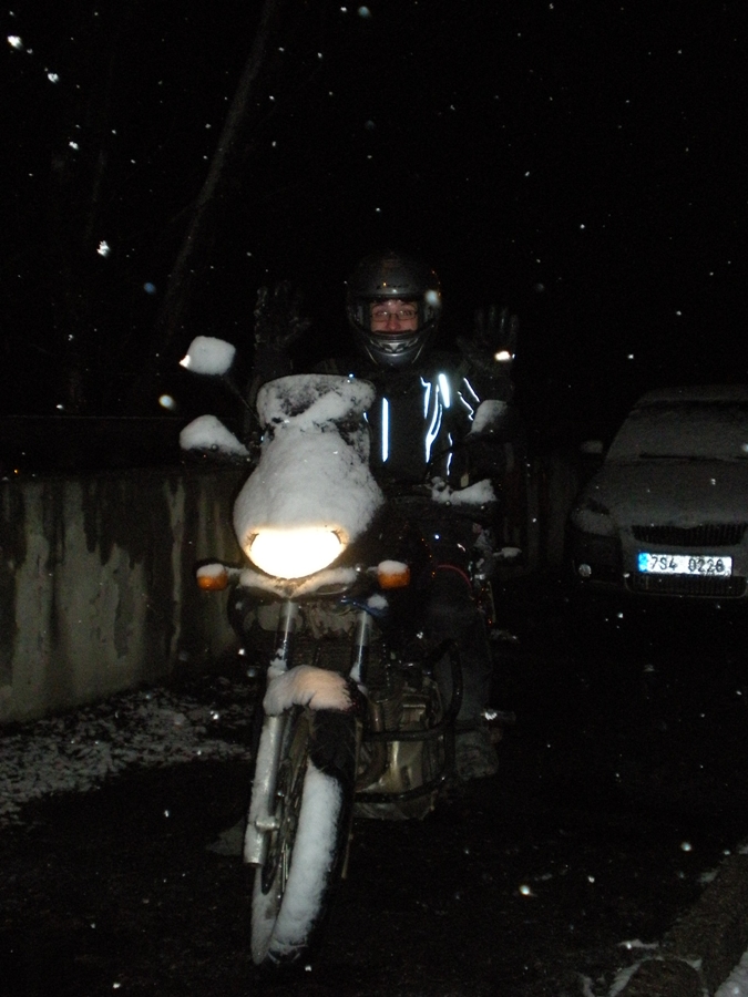 Maxton zdraví ze zimní jízdy... včera jsem byl u přítelkyně a trošku napadl sníh, tak jsem jel svojí historicky první jízdu za padajícího sněhu.... :lol: