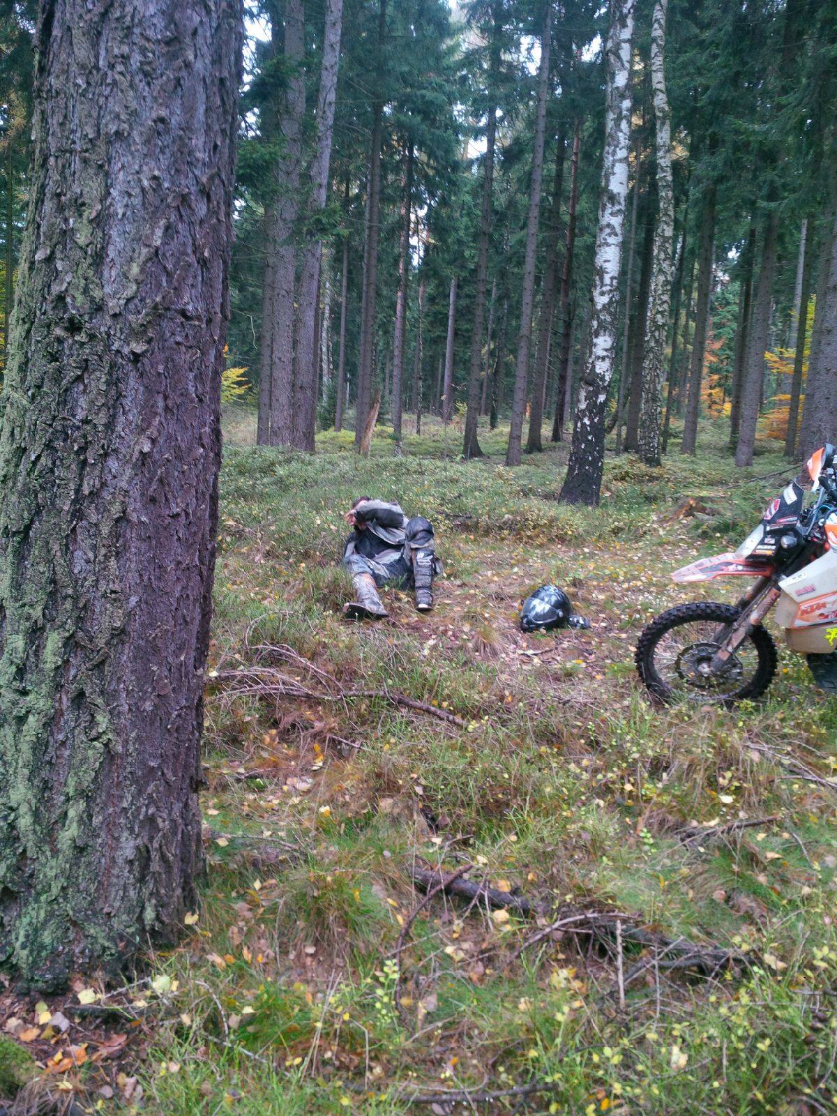 ...tak se mi to vyplatilo. Dnešní poslední offání, posledních 200m offu, se mi splašila Tenera pod prdelí, pár metrů po zadním, oak patník ( CZ/DE ) pak rána o strom....koleno nabouraný, zápěstí nabouraný..RTG bez nálezu, jen natažený vazy, ale pár týdnů bolesti....prostě jedna z posledních vyjížděk za všecny prachy...