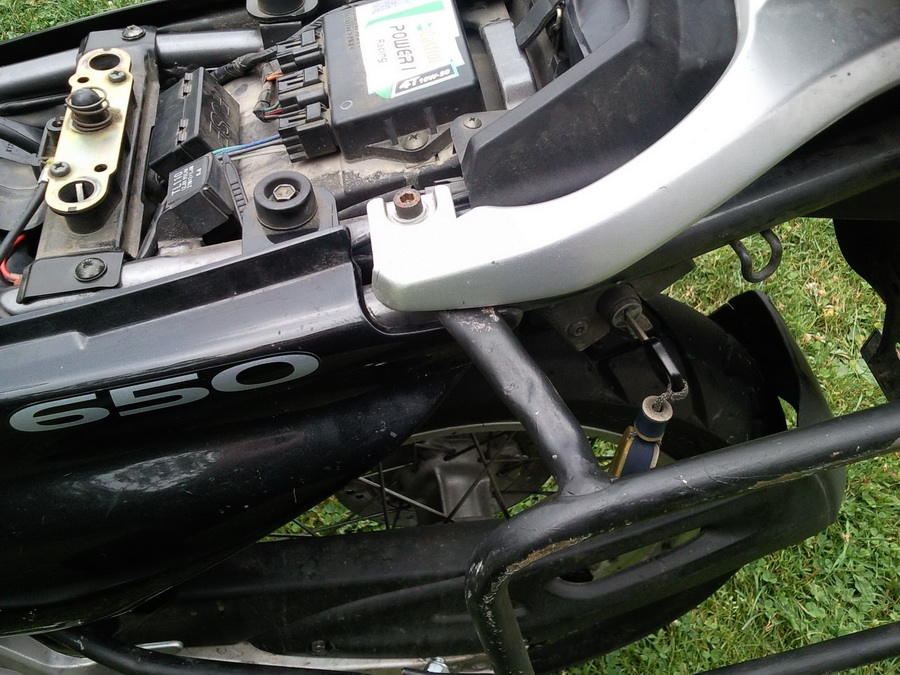 Zdravím možná nejsem sám kdo řešil problém jak přidělat nejen boční ale i horní kufr příkládám pár fotek jak sem to vyřešil zatím tedy jen u horního kufru