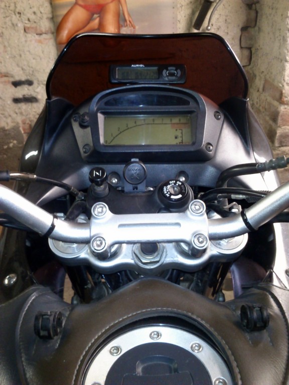 K tomu taky na jeden kufr držák na 3l kanystr na benzin, na druhý kufr držák na 2x1l hliníkovou lahev na vodu a na palubku přibudou palubní hodiny s teploměrem.. 8-)