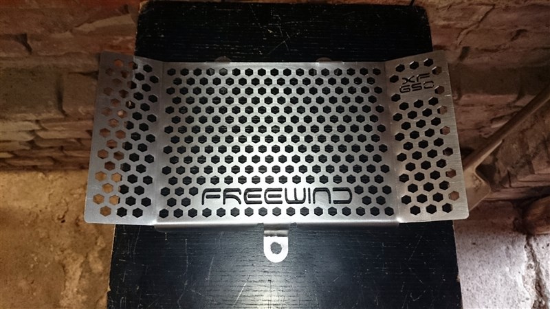 Nový kryt chladiče.. Laserem vypálený z 1.5mm oceli, zatím bez laku ve stádiu pasování..