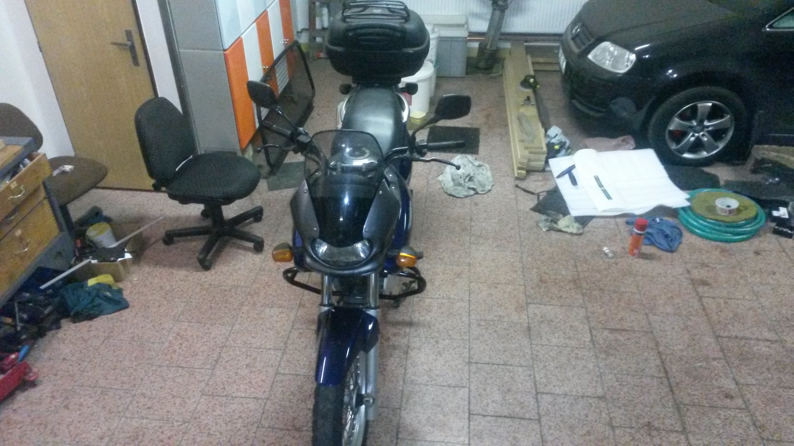 . V září jsem pořídil nové gumy Metzeler tourance, nechal jsem si gumy přezout v servisu. Pláště bych si bez problémů přehodil sám, ale vyvážení to ani v práci neudělám pouze kola na auta a dodávky. Takže jsem zavezl motorku do servisu za hodinku byla hotová tak jsem si pro ni jel, přijel jsem domů oblíknul si hadry na motorku a s přítelkyní jsme se vydali na vyjížďku. Ujeli jsme cca 5 km od baráku a v cca 100km/h se zastavil motor. Tak jsem to odstavil na kraji a už nenatočil ... už na parkovišti jsem měl podezření na zadřený motor. Když jsem doma sundal hlavu tušení se mi potvrdilo. Takže jsem sundal hlavu, spolu s vačkou a vahadlama jsem ji zavezl frajerovi co se tímto živí (se divím že neumře hlady). Mezitím co jsem čekal na hlavu jsem udělal komplet GO převodovky (všechny ložiska, gufera, kontrola všech kvaltů). Po dlouhých 8 měsících hlavu konečně opravil. Byl jsem uplně happy že už bude koněčně motorka v pořádku. Zrovna začínalo jaro tak jsem to během týdne složil motor a namontoval ho do motorky. Prvni start v pohodě tak vše vypadalo že se povedlo. Když už jsem měl motorku poskládanou, tak že bych ji mohl projet jsem zjistil, že mi neřadí převodovka. Moje chyba, že jsem si to nevyzkoušel hned po poskládání motoru. Následovalo opětovné vytažení motoru na stůl. Znovu jsem ho začal půlit, po sundání hlavy jsem zjistil opětovně přidřenou vačku a vahadla. Myslel jsem že mě z toho jebne, měl jsem hodně co dělat abych nesedl do auta a nezajel rozbit hubu frajerovi co to opravoval. Takže po víkendu jsem mu hlavu odvezl znovu. Rozpůlil jsem zas převodovku dumal jsem nad ní cca 4 hodiy a poskládaná byla dobře, proto soudím, že šponovalo pouze ložisko a proto mi převodovka neřadila. Měl jsem tedy poskládanou převodovku a řešil jsem co dál, venku krásně a já neměl motorku a vážně mě to hodně sralo. A tak jsem se rozhodl koupit druhý komplet motor. Na motorkářích Pan Aleš Krejčí inzeroval komplet motor za cca 13000. Volal jsem mu jednání toho pána byla hrůza, chce něco prodat za tolik peněz a neumí se vůbec chovat. Z toho můžete usoudit, že obchod neklapl. Nakonec jsem objevil na allegro.pl komplet motor za 1800 zlotych = cca 12500kč. S polákem byla domluva už v pohodě měl jsem to k němu i blíž cca o 200km než do Humpolce k panu Krejčímu. Domluvili jsme se s polákem na víkend přijel jsem na místo a tolik všelijakých náhradních dílů na tolik motorkek jsem nikdy pohromadě neviděl. Takže polák našel motor sundali jsme z něj víko zkouknul jsem v jakém je stavu hlava. Vnitřek motoru krásně čistý, motor měl mít najeto cca 20 tkm a podle toho jak vypadal zevnitř tomu i věřím. Cena 1800 byla bez starteru nakonec mi motor i se starterem dal za 1850 (za startér samostatně chtěl 300 zlotých